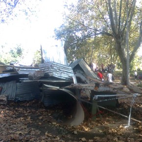 “El taller era para los pacientes. Allí tenían una salida laboral, de herrería, de carpintería. Ellos trabajaban, aprendían a manejar la madera, los metales, tenían un espacio que se los consideraba personas. Era un espacio para ellos. Macri se adueñó de los terrenos del Hospital Borda. Esto no pertenece al gobierno de la ciudad, esto pertenece a una donación que hicieron hace 150 años para que sea hospital neuropsiquiátrico. La donación fue para que solamente sea eso, no se puede construir otra cosa. Y lo de la represión fue un desalojo a los pacientes”, dice una enfermera quien minutos antes hablaba con dos jóvenes acerca de lo que había vivido la mañana del viernes. Mira con desconsuelo la pila de escombros mientras recuerda que en unos días tenían planeado celebrar los 150 años del Borda.