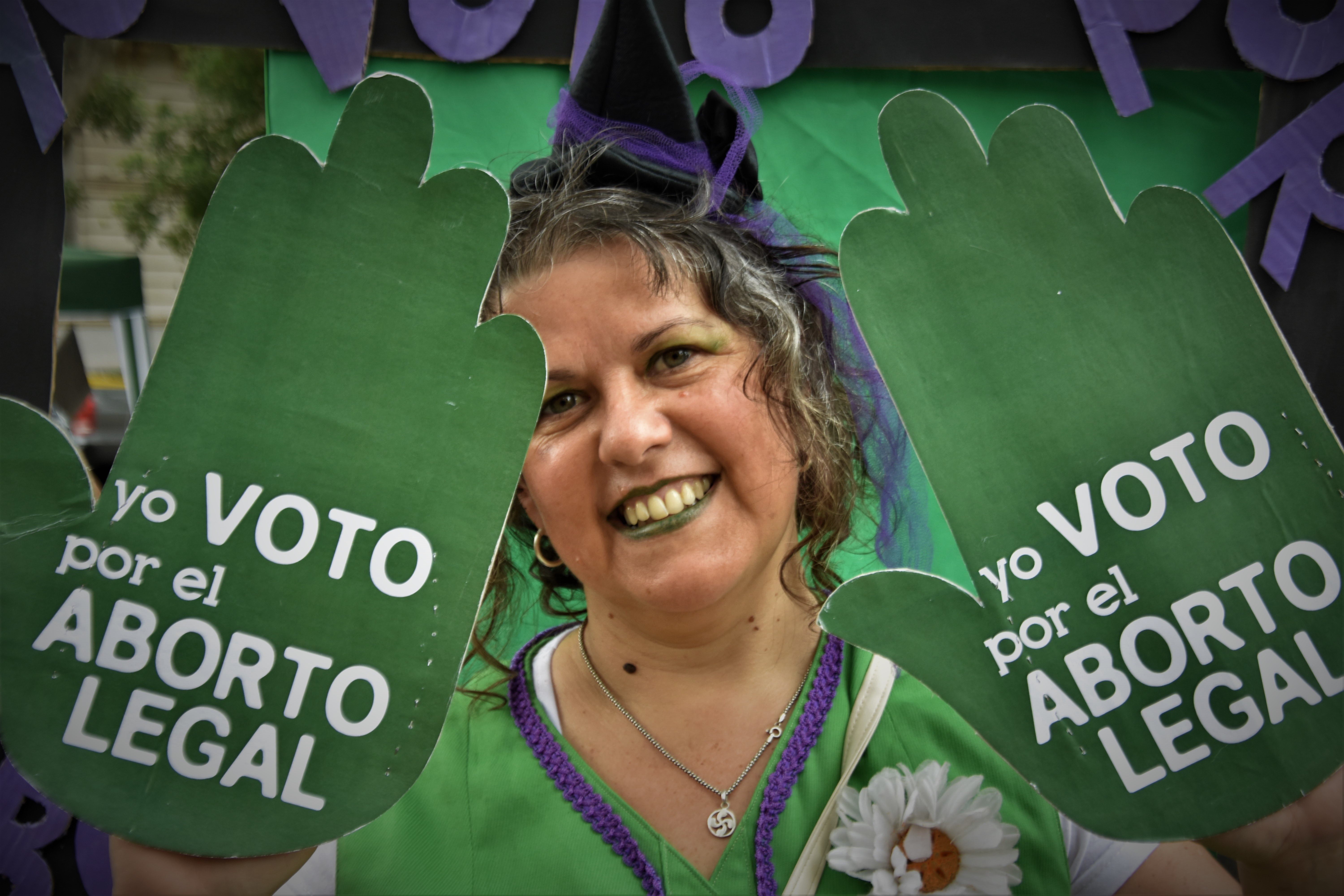 Gandhari es payasa, actriz, militante feminista de la Campaña. Siempre, con una sonrisa, con el color que la ilumina, marcha a favor del aborto legal. “Hay legalizar el aborto para que sea accesible y deje de ser una cuestión de clases. Y que cada mujer pueda decidir libremente”. Todos los martes de abril y mayo, en la Plaza San Martín de Rosario habrá actividades y una pantalla que transmite en vive lo que sucede en el Congreso. Es una manera de mantener en agenda el debate, de hacerlo visible, de sacarlo a la calle y a las plazas.