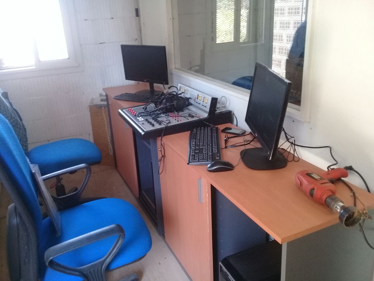 La construcción física de la radio se realizó con el aporte de Dominó, una agrupación de la Facultad de Arquitectura de la UNR que colaboró con el diseño, la mano de obra y los materiales. Para albergar al estudio de la radio en el centro comunitario se hizo una escalera y un primer piso que no existía. Desde la comunidad, fueron gestionando con distintos actores para conseguir todo lo necesario para el estudio: desde las chapas y los vidrios hasta las mesas y las sillas.
