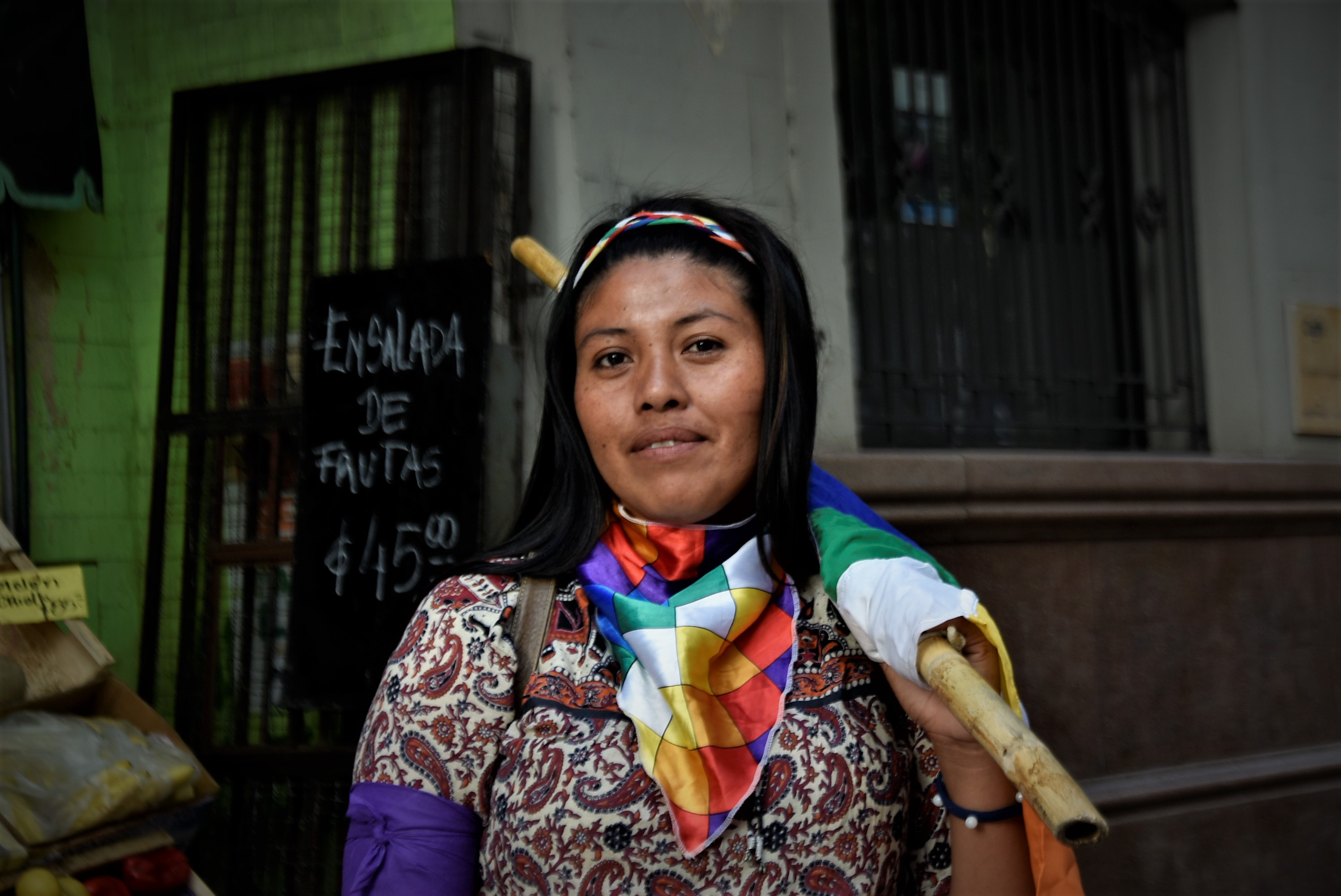 Rupera Perez, mujer indígena referente en Rosario, marcha y dice: “tenemos nuestras hijas y nuestras nietas que son el futuro, por eso esta reivindicación histórica a nivel mundial es muy importante, para hacer visible nuestra participación. Las mujeres indígenas sufrimos atropellos, maltratos, violaciones y hay muchísimas mujeres pobres”.