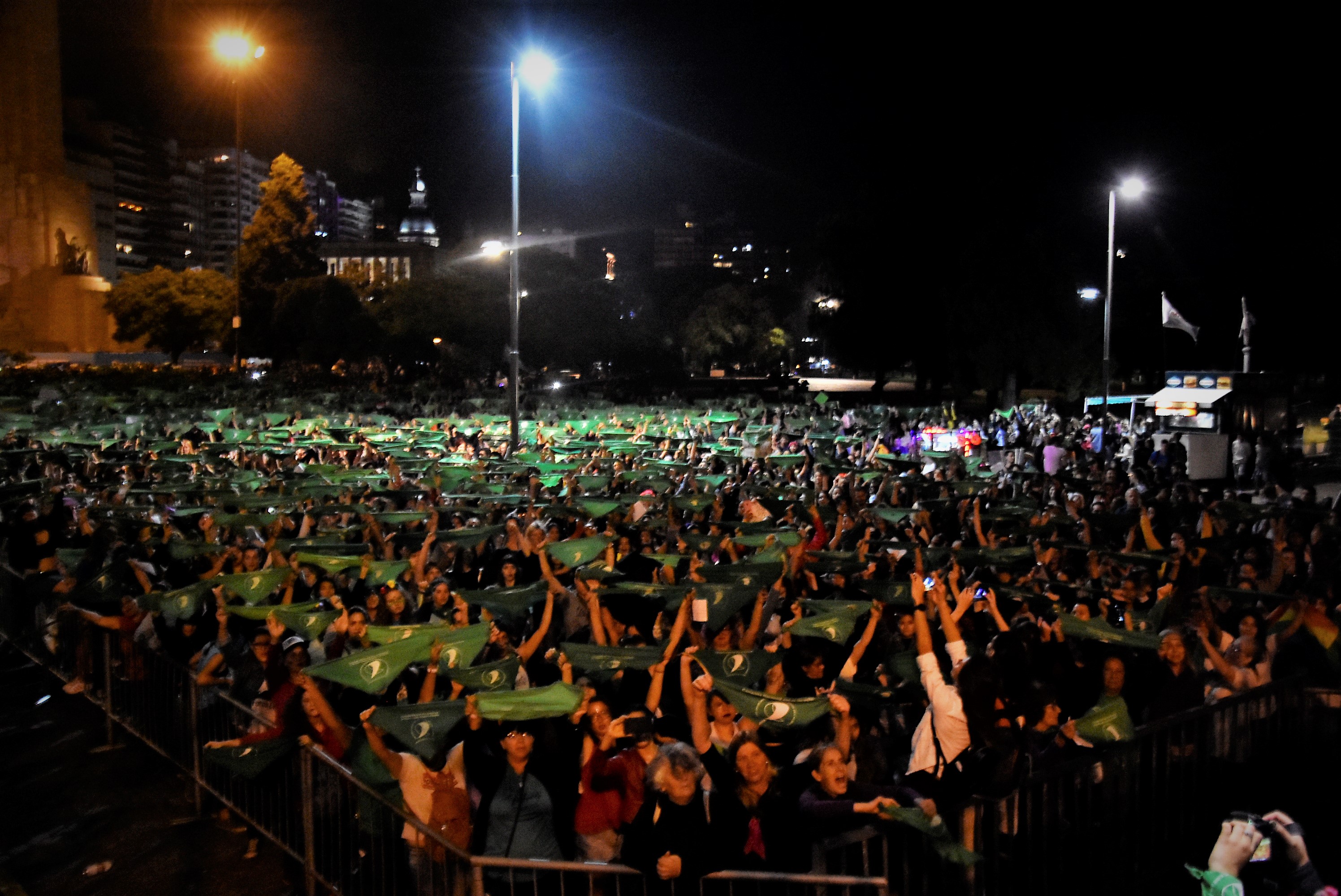 El pañuelo verde es un emblema. Camina, viaja, anda, grita, llora, abraza. Está ahí, siendo carne en los cuerpos, gritando aborto legal ya. Desde el escenario, entre todxs se lee la Proclama consensuada en la Asamblea Feminista. Un grito colectivo que denuncia todas y cada una de las violencias que sufrimos por ser mujeres, lesbianas, travestis, trans, no binaries, indígenas.