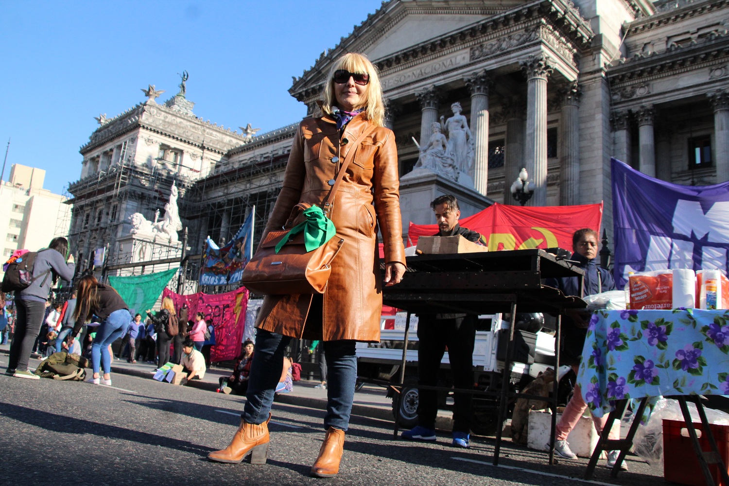 Greta vino con amigas. “Tenemos derecho a decidir sobre nuestro cuerpo. Estamos empoderadas, todas juntas y si estamos todas juntas somos millones. La maternidad será deseada o no será”, dice y tiene tan solo 19 años. Blanca es una de las pioneras. De esas mujeres que lloran cuando escuchan a pibas como Greta. Tiene entre sus manos un pañuelo verde, uno de los primeros señala con orgullo, el mismo orgullo con el que cuenta que hace más de 30 años conoció a Safina Newbery. “Safina nos invitó a Capital a un grupo de feministas, y vinimos y eso nos abrió la cabeza, veníamos una vez por mes y eso lo llevamos a Claypole y ahí fundamos una casa de la mujer. Todo gracias a Safina”.