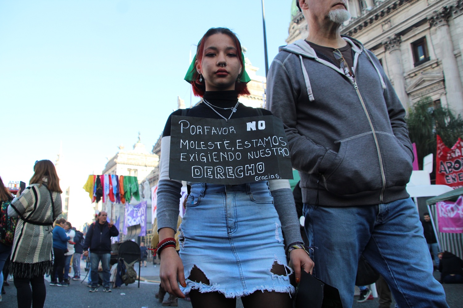 Tiene 28 años y viajó desde Avellaneda hasta Capital, sola. En unas horas se encontrará con su mamá que ya tuvo dos abortos. “Por suerte salió todo bien”, dice. Laura lo sabe: su mamá sobrevivió a la clandestinidad. No todas pueden hacerlo y por eso marcha. “No puede ser que se sigan muriendo las pibas más humildes por no tener plata para poder pagar un aborto, por no tener los cuidados que todas nos merecemos”.