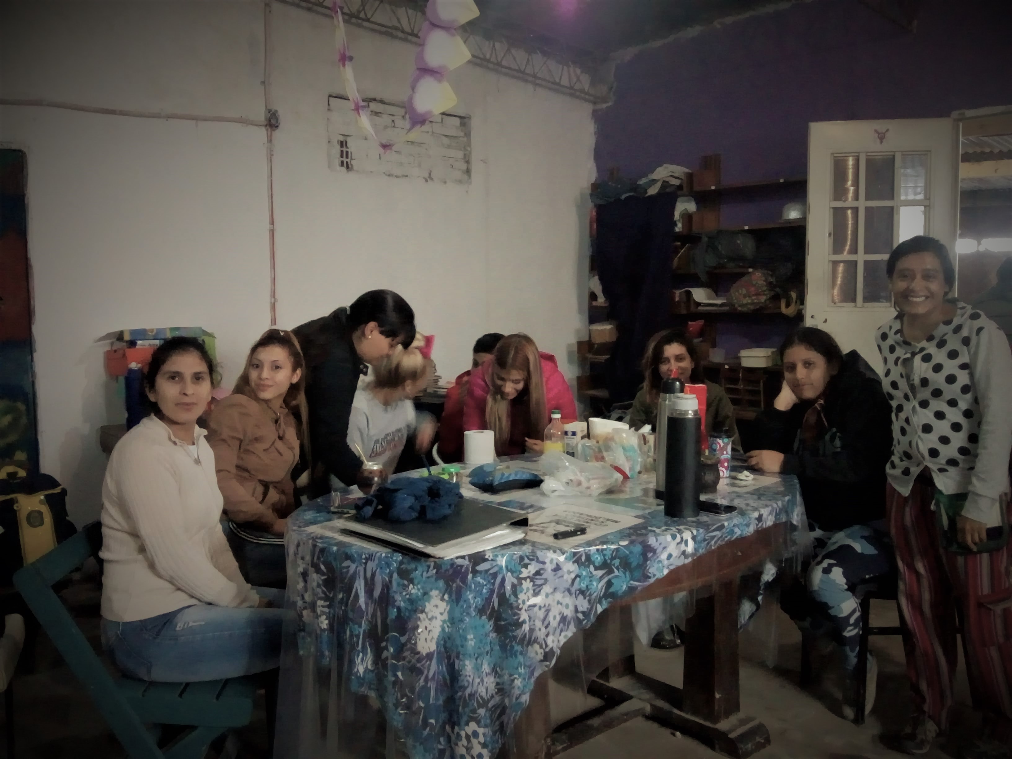 La tormenta sigue golpeando duro sobre la chapa. Las compañeras improvisan unos ladrillos para evitar quedar empantanadas mientras el mate dulce y caliente repara del frío. Mensajeros de Jesús es un espacio histórico en Villa Banana. El lugar es una pequeña casa que, de a poco, está empezando a ser recuperada por sus propixs vecinxs. Allí también se desarrolla el taller de serigrafía en el marco del programa provincial Nueva Oportunidad y al que concurren chicas que no integran la cooperativa pero que de a poco empiezan a reconocer en estos procesos colectivos una posible salida laboral. “Que las chicas puedan empezar a ver esto como una futura entrada”, dice Mariana y agrega: “Hay gente que cree que estar acá es perder el tiempo, porque al principio era sentarnos y vernos las caras y no sabíamos si llorar o qué. Yo me quedé sin trabajo y así como yo, hay muchas otras compañeras. Y eso te bajonea. Para mí es muy importante ser parte de este espacio, poder empezar a generar tu propio ingreso, no tener que depender de tu pareja. Este año nos estamos perfeccionando, queremos aprender bien la técnica”.