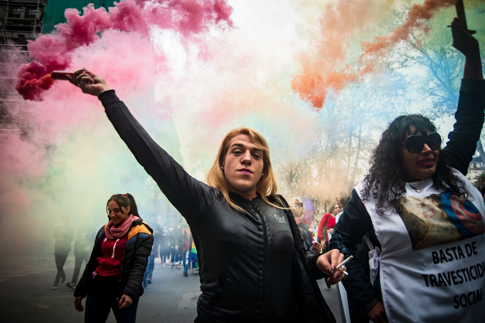 «Señor, señora, no sea indiferente, se mata a las travestis en la cara de la gente», se escucha el canto en la calle, mientras avanza la marcha. Entre la multitud está Mayra, 51 años. Es una sobreviviente, dice, porque pudo superar esa franja etárea que limita la vida con la muerte. Y aunque reconoce que ahora hay más libertad para estar en la calle que antes, también habla de lo que significa el travesticidio social. De las muertes de sus amigas por culpa de la indiferencia estatal. Por eso, en menos de un minuto repite dos veces “somos personas como cualquier otra. Que la gente vea eso, que tenemos los mismos derechos”.