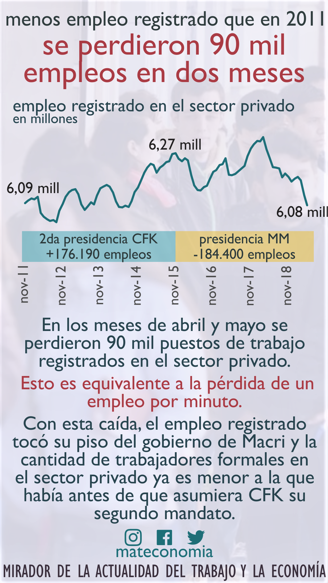 Entre abril y mayo se perdieron 90.000 puestos de trabajo, lo que equivale a la pérdida de un empleo por minuto