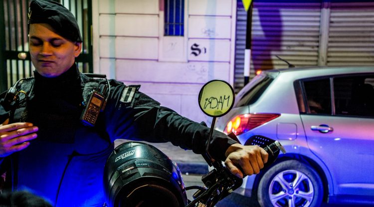 La señora, tan educada, se muerde la lengua antes de terminar el insulto. Mira de reojo y se avergüenza de que la escucharan. Otra, en tono gracioso, los manda a comer choripanes. Más tarde una mujer llama a un patrullero y le pide que se queden a custodiar. Teme que alguien haga algo contra el búnker, que hasta el cierre quedará iluminado con el azul policial intenso e intermitente.