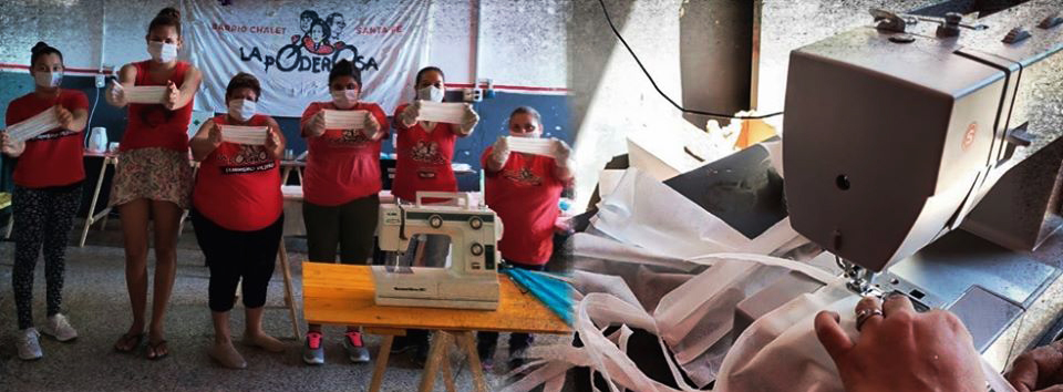 En Santa Fe, en el barrio Chalet, la Poderosa inauguró en el 2017 la cooperativa la Sub Limada. «Son 15 compañeras que la integran y trabajamos turnos de 5 personas, teniendo en cuenta todas las medidas de prevención. Estamos cociendo barbijos para las 38 familias de nuestra Asamblea, y además tenemos un comedor comunitario los sábados y domingos, y necesitábamos extremar las medidas. No podemos dejar de producir porque justamente esta cuarentena total hace que muchas barriadas empobrecidas no podemos parar, porque los medios de subsistencia es la economía popular. Entonces, así producimos alimentos de forma segura con nuestros propios barbijos. Y también vamos a donar 100 barbijos para la Casa Cuna de la ciudad de Santa Fe», cuenta María Claudia Albornoz, militante de La Poderosa.