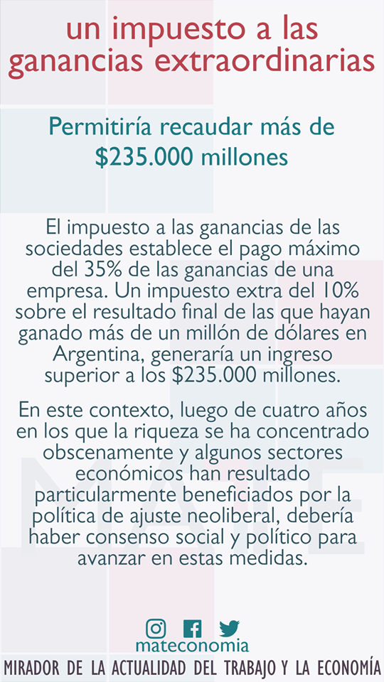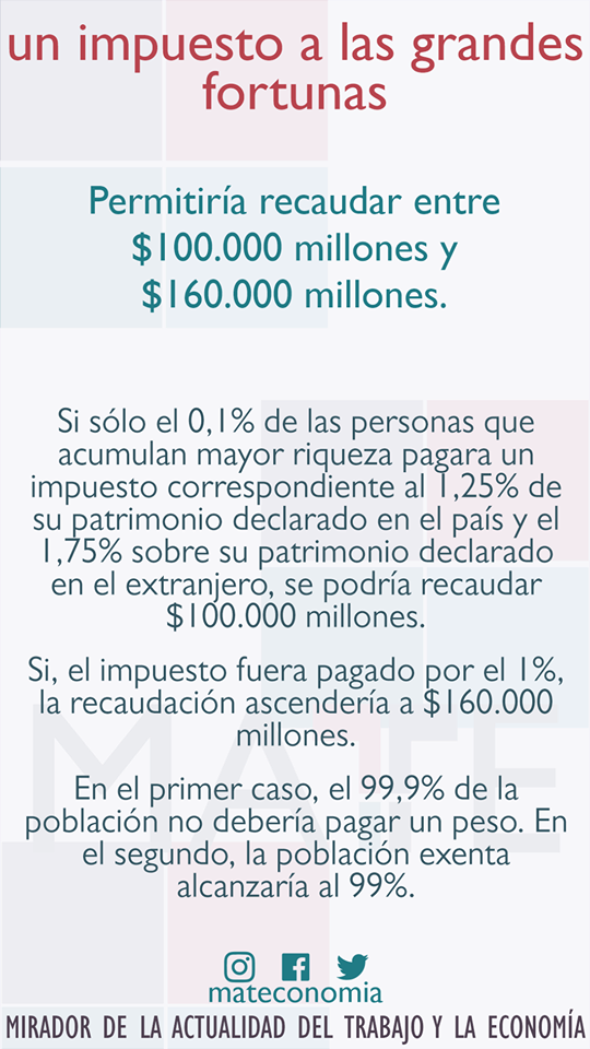 ¿Qué significaría gravar con un impuesto extraordinario a las grandes fortunas? Estos gráficos elaborados por el Mirador de Actualidad del Trabajo y la Economía detallan con cifras y porcentajes la importancia de que quienes acumulan enormes ganancias aporten en el marco de esta pandemia que nos afecta a todxs.