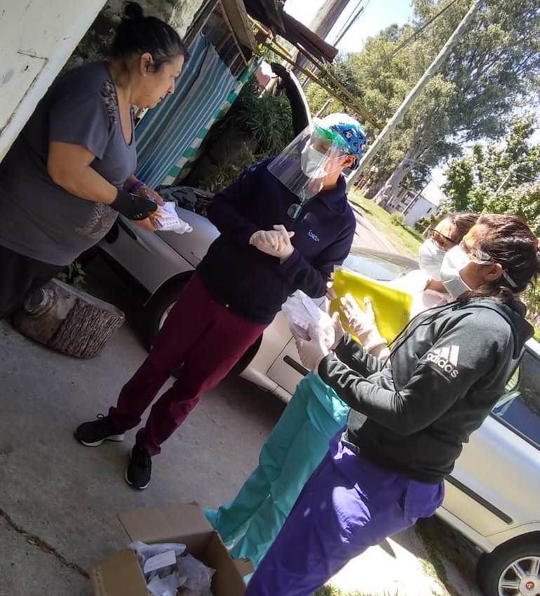 Como el espacio es chico y son varias las personas que trabajan, Andrea les pide a sus compañerxs que despejen una de las salas para poder hablar tranquila. Dice que las modificaciones que van haciendo tienen que ver con las situaciones que atraviesan lxs vecinxs. Uno de los objetivos era evitar que salieran de sus casas las personas del grupo de riesgo (diabetes, hipertensión, mayores de 65 años y embarazas). Por eso fueron casa por casa para ver qué necesitaban y para llevarles las vacunas y la medicación. En el caso de que esa población de riesgo necesite ir al Centro de Salud, organizan determinadas franjas horarias donde no haya gente para evitar el contacto. A la página de Facebook que ya tenían le sumaron un grupo de whatsapp para tener comunicación directa con quienes viven en el barrio.