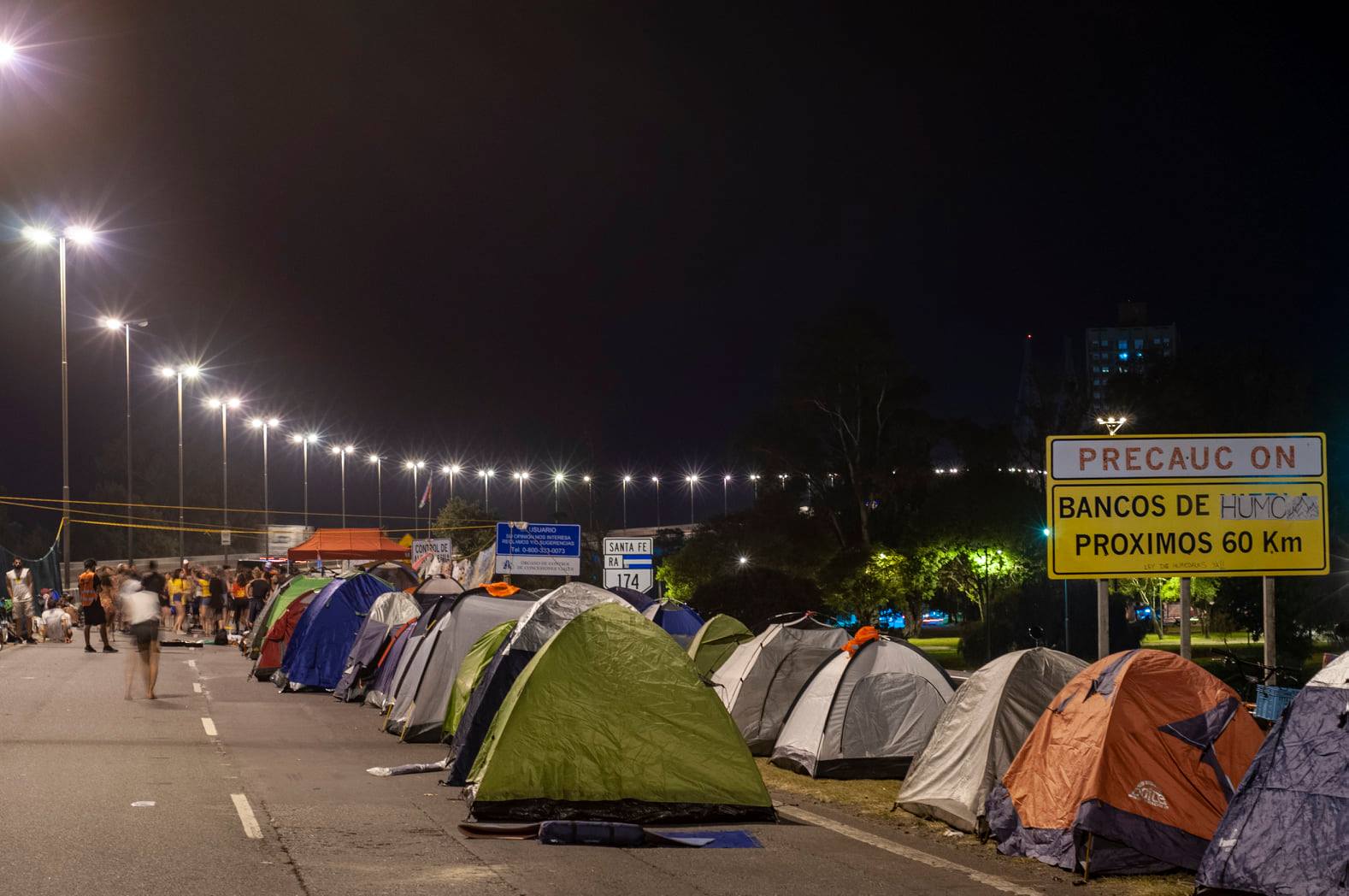 – Se realizan acciones legales: amparos y denuncias que mueren en el ámbito judicial. A la par, estrategias de visibilización donde lo que se expone, es el propio cuerpo: intervenciones artísticas en el Monumento a la Bandera y en el puente; la marcha por la Avenida Pellegrini, una kayakeada para unir las dos orillas, desdibujando los límites juridisccionales que tanto sirven de excusa al poder político y el acampe, durante una semana, sobre el asfalto incendiado por las altas temperaturas en el Puente Rosario-Victoria.