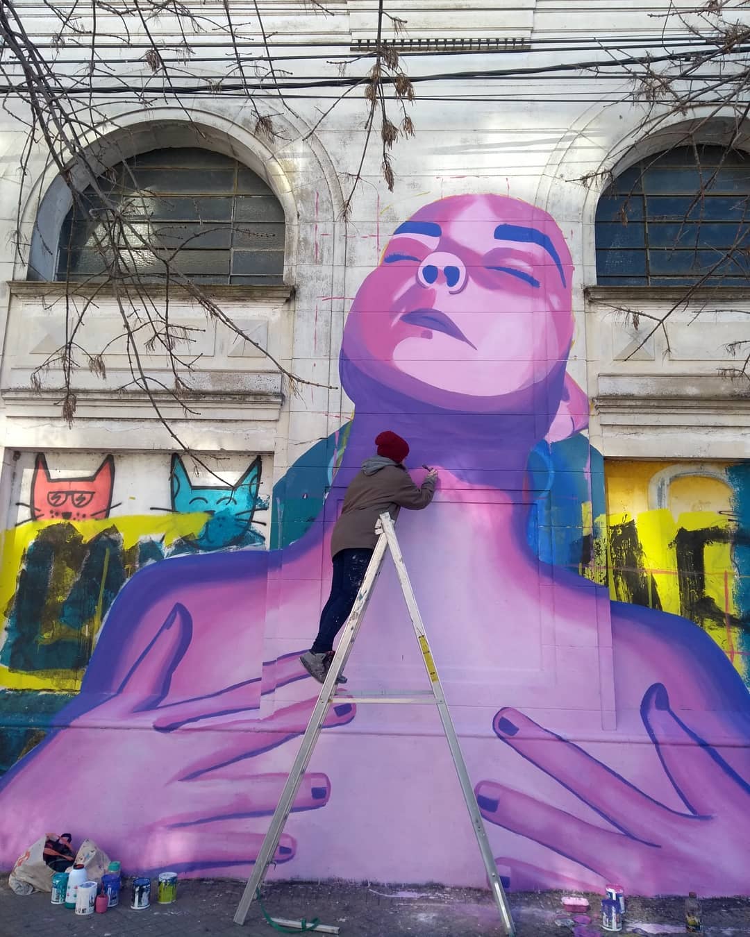 Para Cintia lo que más la motiva es pintar en conjunto. “Aprendo de la compañera, veo cuáles son los procesos que hacen para poder emplearlos, tanto en lo técnico como en lo organizativo. Y a nivel humano también, el impulso de anotarte a un festival por ejemplo, eso te lo da la agrupación. A mí siempre me gustó pintar en la calle, es algo que no necesita nada más que ser visto y disfrutado. Y los murales en los barrios me llenan de felicidad”.