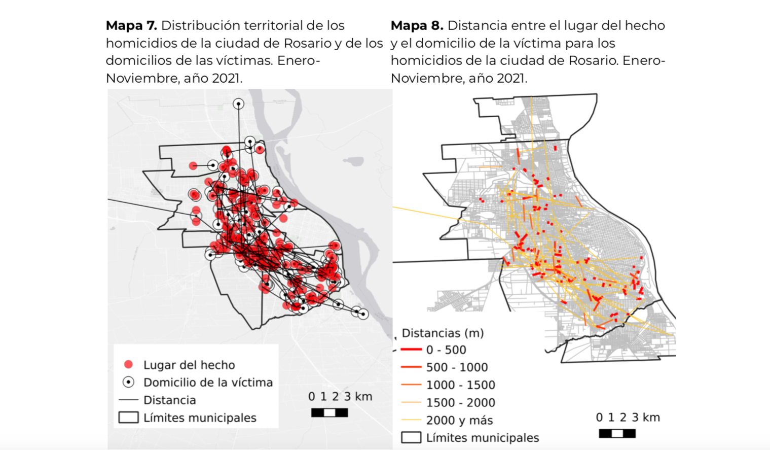 La que escribe en sus redes es la escritora feminista Zuleika Esnal.  Es que tres años después de esa foto en la que Dalmiro la abraza, su nombre aparece en la sección policiales del diario La Capital. La nota relata la dinámica de su crimen y no mucho más. “Una ráfaga 9 milímetros acabó con la vida de un pibe de 20 años” dice el titular. El relato describe el hecho y el lugar: uno de los tantos barrios populares de una ciudad que se desangra en sus márgenes y mucho más allá de las avenidas patrulladas por las fuerzas federales. Una ciudad que registra cada día una nueva balacera y multiplica sus “puntos rojos” en un mapa que se define según estadísticas: en el Departamento Rosario se registraron entre enero y noviembre de 2021, 223 homicidios. El 84,8% ocurrió en la ciudad cabecera, Rosario. En general, los crímenes se registran en buena parte de la traza urbana que está por fuera del cuadrante definido por las avenidas Ovidio Lagos y Pellegrini. Allí, donde los puntos rojos del mapa definen los territorios y su “grado de peligrosidad” para los informes  anuales que realiza el Observatorio de Seguridad Pública de Santa Fe.