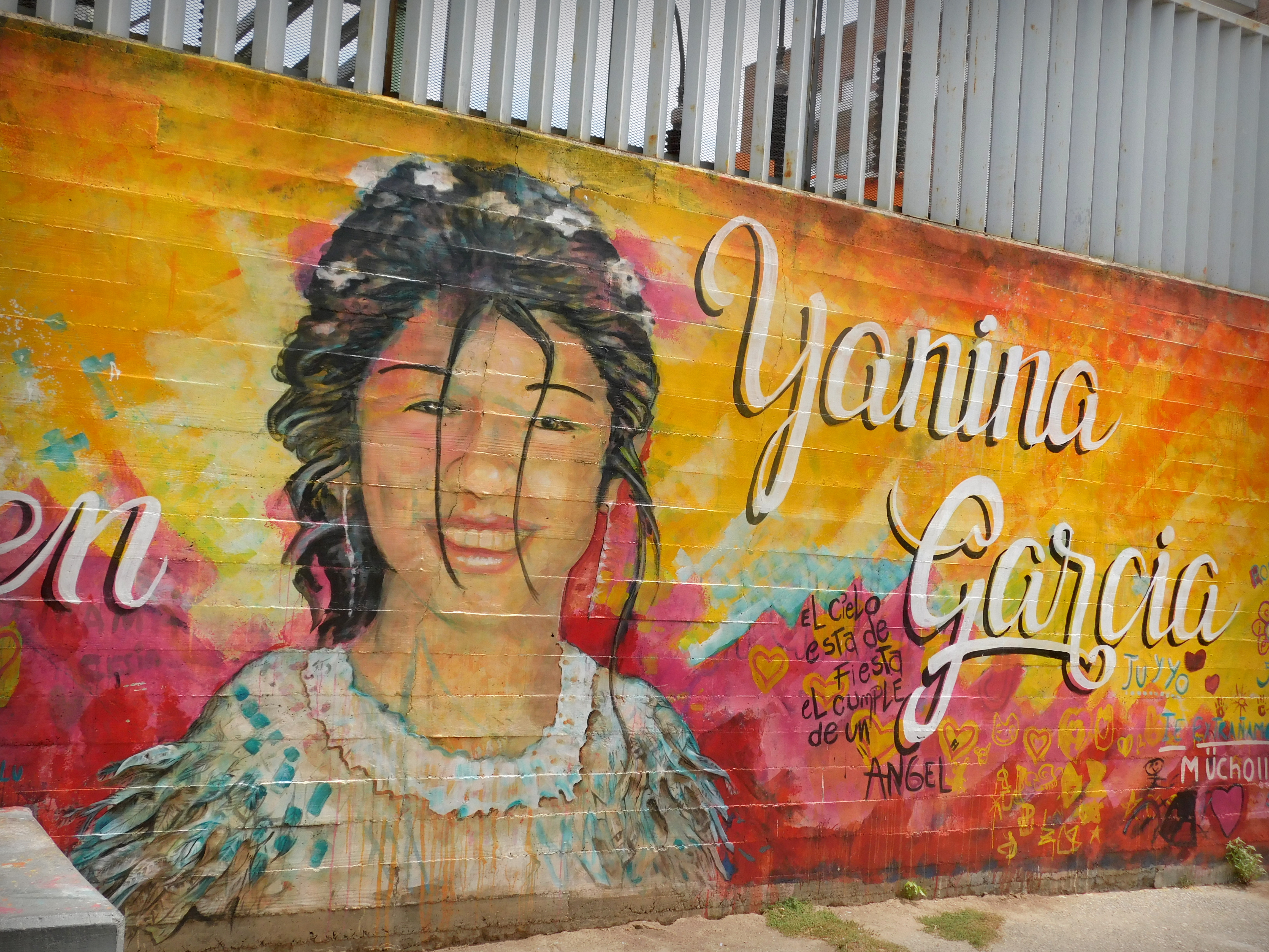 En la Plaza De Las Luces Yanina García tiene su propio mural. Son dos retratos suyos acompañados por distintos mensajes de sus seres queridos: