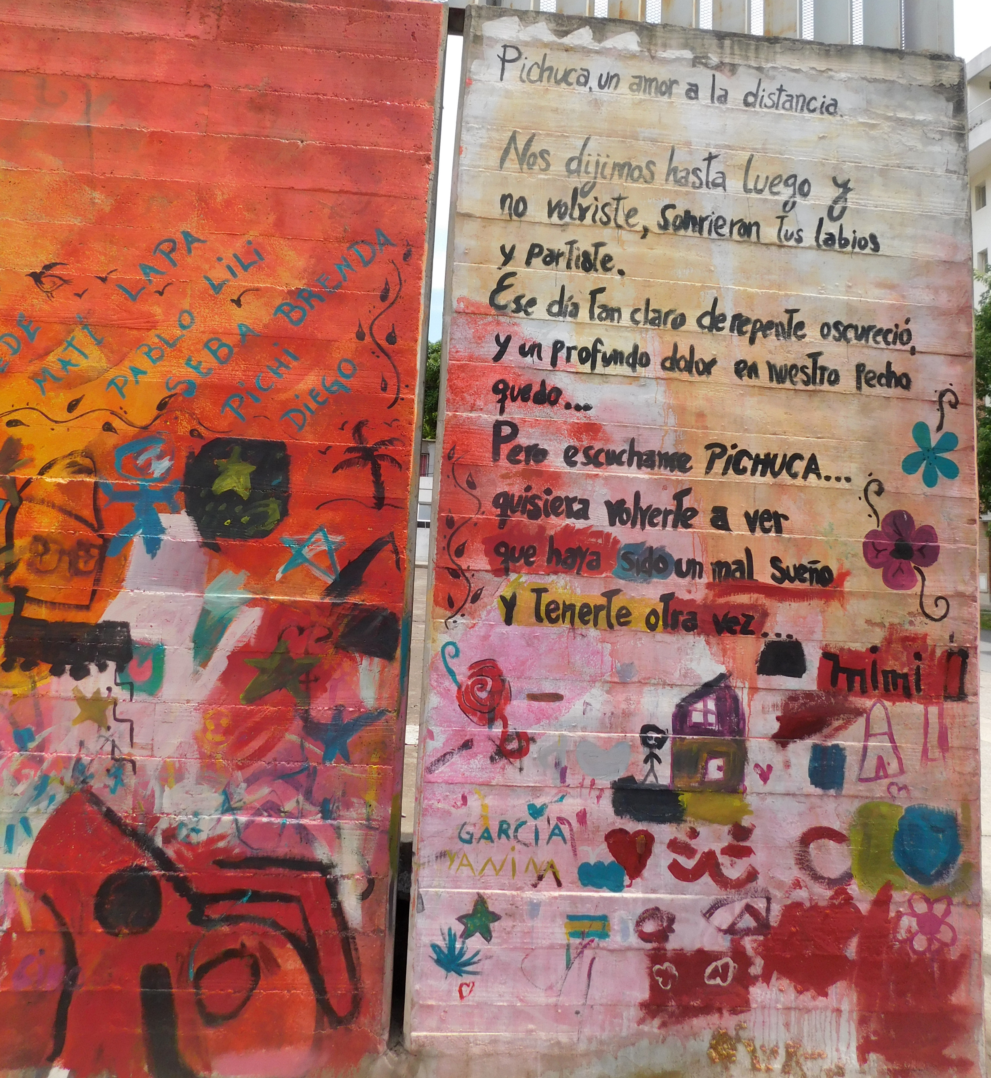 “Pichuca, un amor a la distancia. Nos dijimos hasta luego y no volviste. Sonrieron tus labios y partiste. Ese día tan claro de repente oscureció y un profundo dolor en nuestro pecho quedó. Pero escúchame, Pichuca, quisiera volverte a ver, que haya sido un mal sueño y tenerte otra vez. Mimi”.
