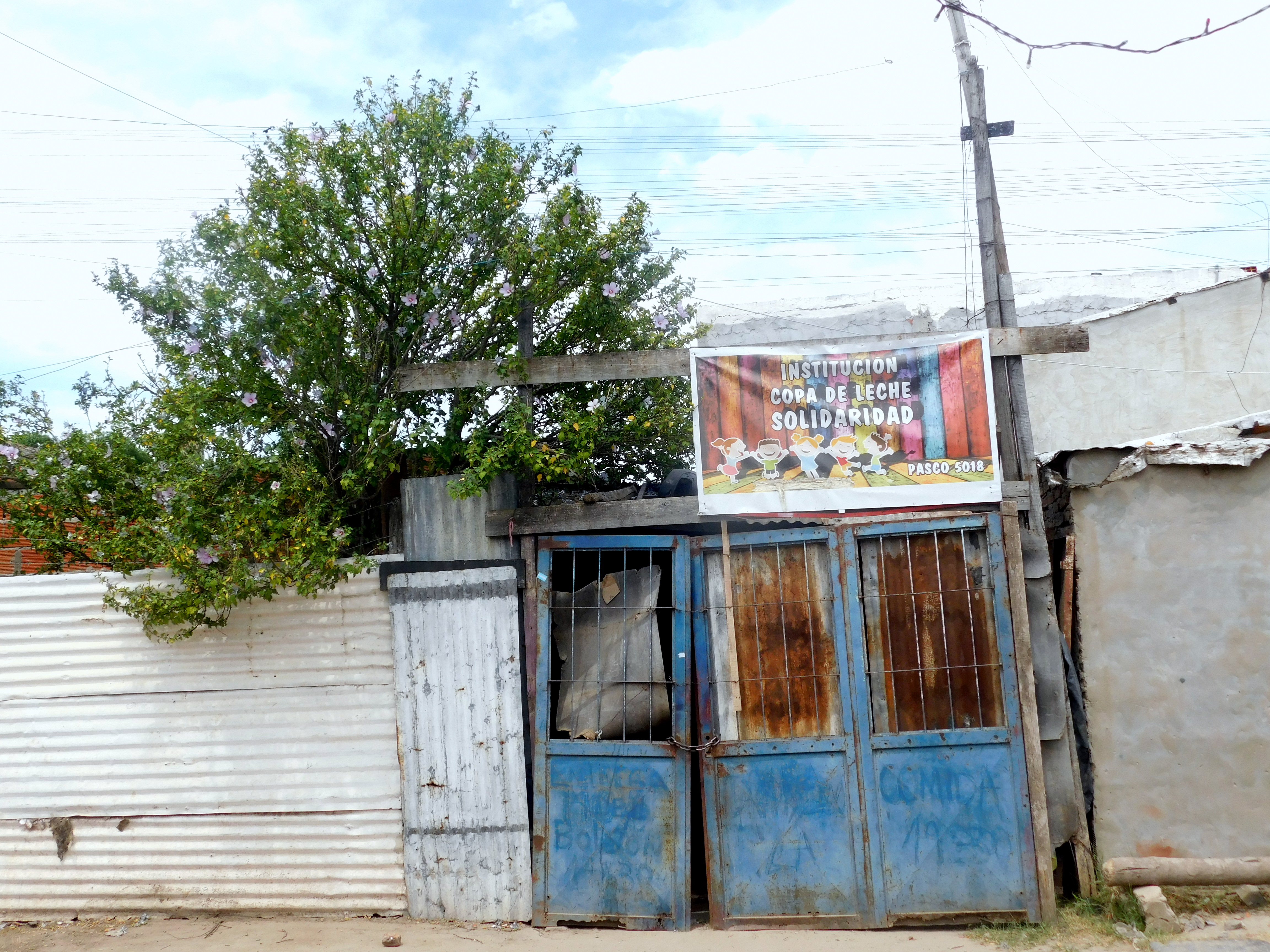 El comedor tuvo distintas sedes y ahora tiene intenciones de volver a mudarse. Esta vez, a unos pocos metros, apenas cruzando la calle, donde de a poco fueron levantando un galponcito para terminar de institucionalizar el lugar. Todavía falta mucho, por eso empezaron a pedir ayuda a la comunidad para conseguir los materiales necesarios y así terminarlo. Desde afuera se ve el cartel con la palabra “Solidaridad” que anuncia el nombre del comedor. “Mientras tanto yo hago la comida acá, les hago hacer la fila a los chicos ahí en el pasillo y reparto dos veces a la semana. Estoy trabajando con una organización con la que salimos a pedir a todos lados para poder cocinar. Y eso es mucho, porque yo cocino dos veces por semana y cualquier ayuda es bastante”.