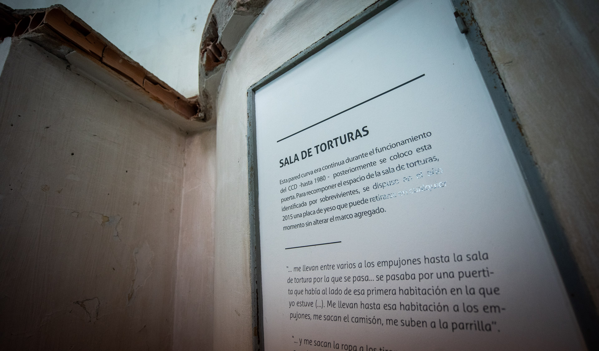 “Junto a los centros ilegales La Calamita y la Fábrica de Armas Domingo Matheu, esta escuela integró un circuito represivo subordinado al Batallón 121 de Rosario”, dice otra parte del cartel que se emplaza frente a la escuela. Por los crímenes ocurridos en ese recorrido fueron condenados 17 represores en juicios orales llevados adelante en Rosario entre 2010 y 2013.