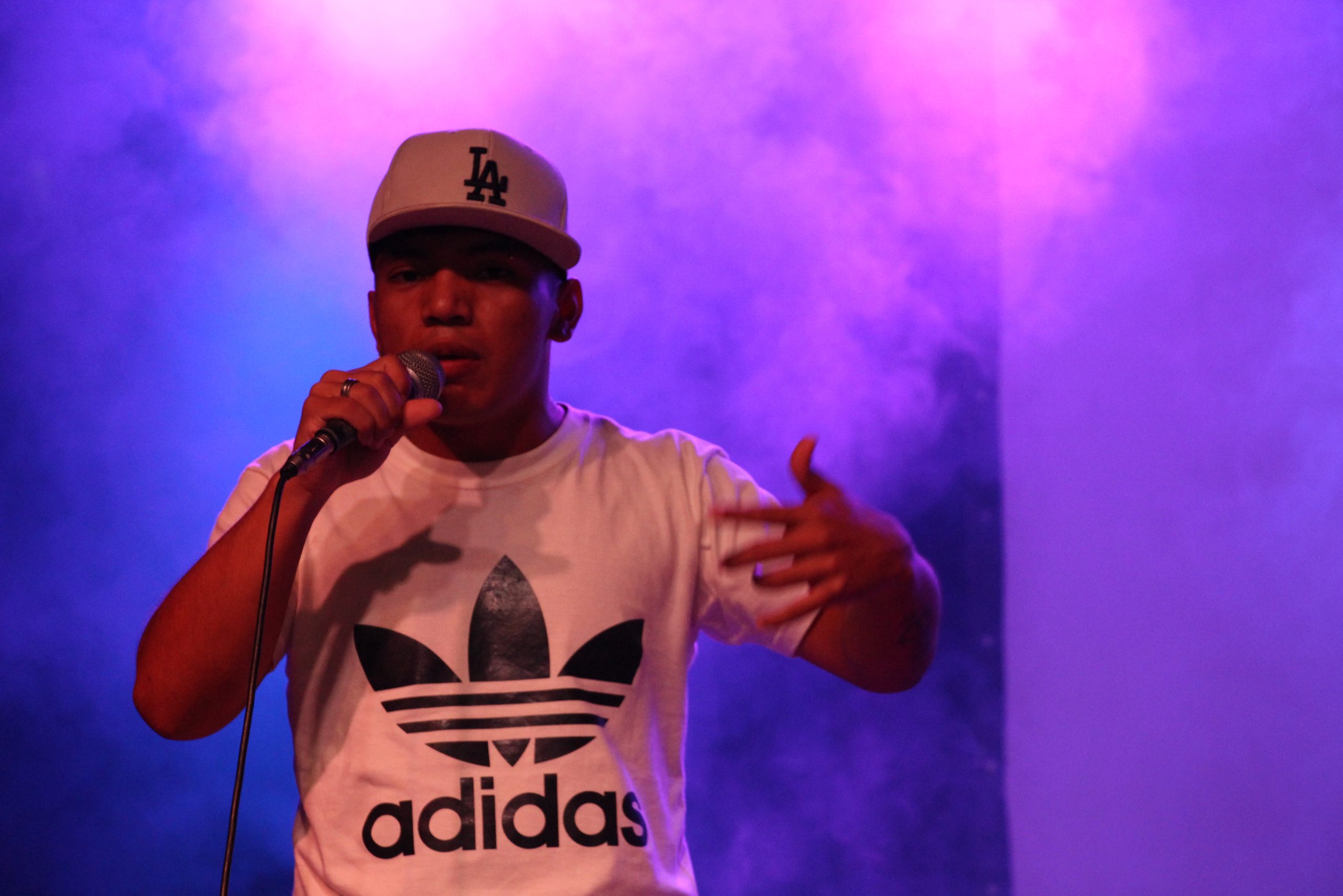 Broder (Francisco Peña) está arriba del escenario junto a su crew. Sus treinta y dos años los vivió en el barrio y dice que trata de que en su música se refleje su gente. Su forma de entrada al hip hop fue mirando batallas de freestyle de Venezuela. Era 2009 y todavía no pensaba que podía seguir el camino que lo llevó a que hoy esté arriba del escenario bajo la atenta mirada de la fotógrafa de Sur Productora. Empezó a averiguar, a meterse, a bucear en las redes. Y pasaron los años. Y conoció otras competencias. Y empezó a improvisar, a tirar rimas. No le fue fácil. Pero insistió.