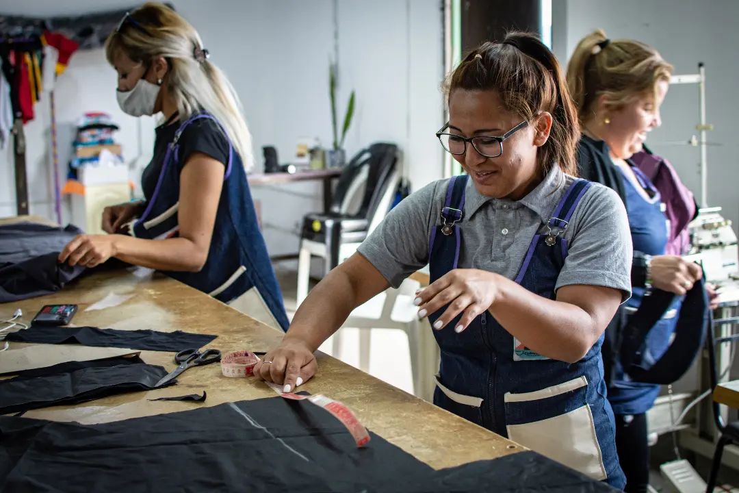 Organización, distribución de tareas y sobre todo, comunidad: Jamandreu es como una gran familia y el clima se siente apenas se ingresa al taller donde se ubican las distintas máquinas alrededor de una larga mesa de trabajo. Las chicas ocupan su lugar y las risas, las charlas, la concentración, el ruido de las máquinas, a veces el silencio y la amistad marcan el compás de una jornada laboral que se divide en dos turnos: mañana y tarde.