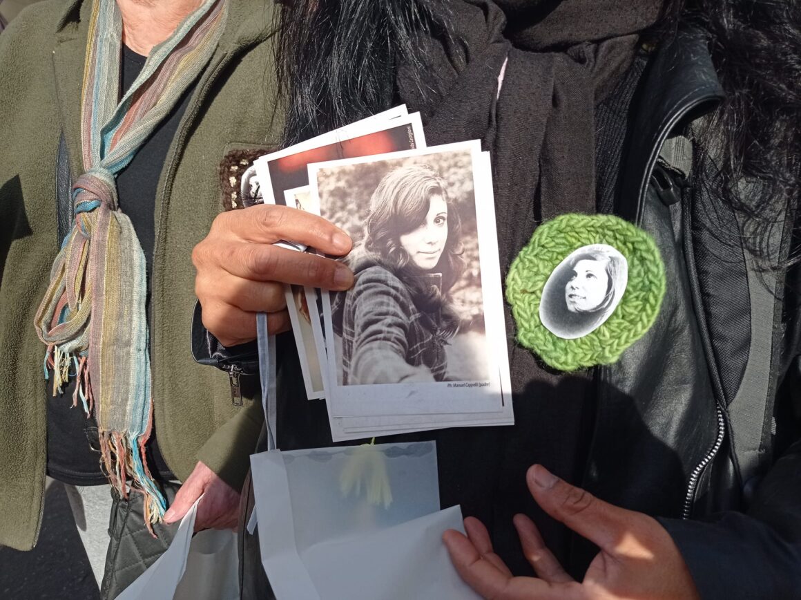 Una postal que recorre 400 kilómetros. Un prendedor que se lleva fuerte en el pecho. La imagen de Mónica siempre joven. Un altar con velas encendidas. Una máquina de coser. Libros subrayados por ella misma. Las lecturas de Mónica: Artl, Rulfo, Sausurre. Mónica Cappelli amaba leer, fue una de las fundadoras de la biblioteca de su grado cuanto estaba en la primaria. Estudió Letras y le quedaban solo seis materias para recibirse cuando dejó la carrera para mudarse a Rosario e integrarse a la militancia política en el PRT-ERP. Mónica también tenía otra pasión: la costura, el bordado. Tejer. “Yo he hecho muestras donde he retomado hilos, botones, resignificándola”, cuenta Carina. Mónica hizo de la ternura un arma cargada de lucha. Mónica está presente en legajos universitarios, en postales, en fotos que cuelgan junto a tantos otros desaparecidos por la dictadura genocida, en placas recordatorias, en prendedores de lana, en jazmines ofrendados al río Paraná. En un cartel que recuerda a las víctimas de la Masacre de las Verbenas. En flores que son memoria, en tejidos que resisten más allá del olvido, de la impunidad, del negacionismo, de la crueldad.