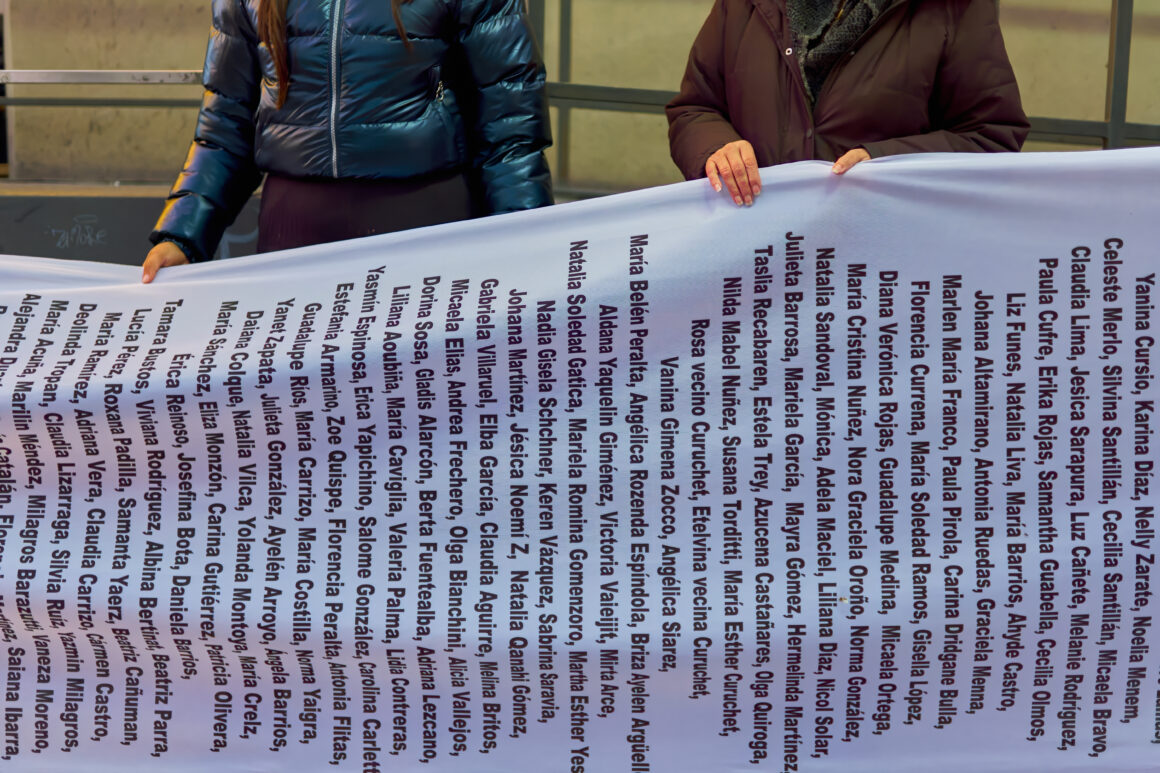 La imagen impacta: por primera vez en las marchas rosarinas, una bandera extensísima recoge los 2967 nombres de mujeres e identidades feminizadas asesinadas en los últimos 10 años en Argentina, según indica el relevamiento del Observatorio local “Mercedes Pagnutti”. Transfemicidios que nos duelen en todo el cuerpo porque, sabemos, detrás de cada uno de esos nombres hay trayectorias vitales diezmadas por la violencia machista más extrema.