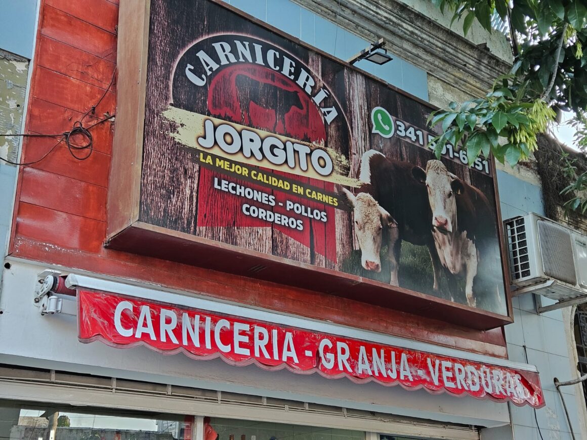 Jorge Muñoz se baja del colectivo y camina por calle Gorriti hasta llegar a la carnicería que lleva su estampa: ´Jorgito. Carnes, verduras y granja´. Primero el candado, luego la puerta de la reja; entra y acomoda algunas cosas. Desde adentro corre una cortina y sube manualmente la persiana. Saca unos banners que encastra sobre el cordón de la vereda. Luego dos pizarrones con patas de madera y un bicicletero metálico negro. Un vecino que pasa por la vereda de enfrente lo saluda levantando la mano. Él devuelve el saludo enérgicamente, al tiempo que saca otros dos pizarrones que exceden su altura de 1.80 metros. Jorgito repite este ritual desde hace 19 años, cuatro veces por día, cada vez que abre y cierra la carnicería que atiende en horario cortado. Al final de cada jornada desanda los 180 metros que separan su negocio de la parada donde se toma el 102 rojo que lo lleva hasta su casa en la zona noroeste de Rosario, donde vive junto a su esposa, Griselda, y sus dos hijos: Antonela, la primogénita, y Marco, quien disfruta tanto de atajar como de ninguna otra cosa.
