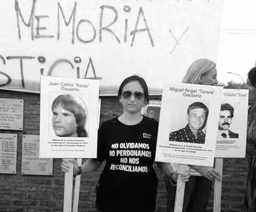 En junio, casi como un bálsamo o una caricia al alma, llegó el tan merecido reconocimiento: la escuela secundaria Nº 574 se llamaría “JUAN CARLOS GAUSEÑO”. Toda una vida de lucha y militancia por la memoria, la verdad y la justicia, cobró sentido, cada granito de arena, cada camino recorrido, cada sinsabor y todo el amor y garra de la militancia tuvo su coronación en ese acto de imposición de nombre. Sentí que junto a mis compañeros estábamos escribiendo un cachito de historia, porque impregnamos de identidad, de reivindicación en la sociedad y para siempre a una generación diezmada que se jugó la vida por su pueblo. Soy portadora de un apellido que jamás desaparecerá, contradiciendo el designio de los genocidas, una vez más: No pudieron ni podrán.